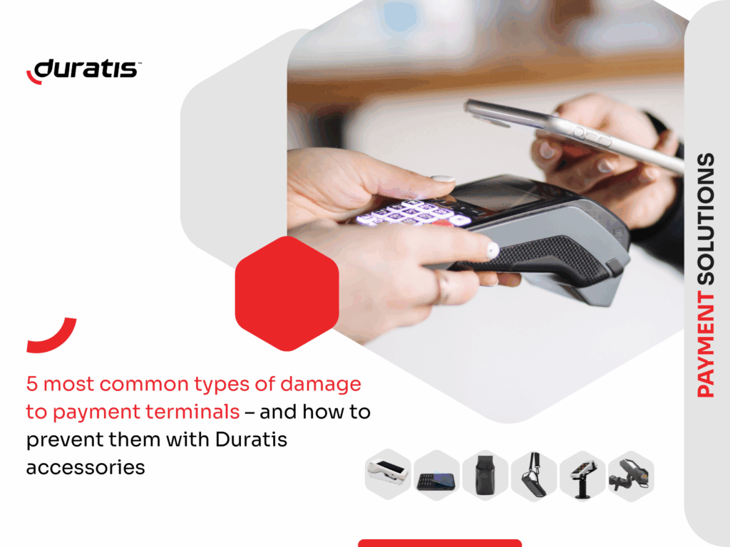 Payment terminals operate today in demanding environments: in stores, restaurants, gas stations, taxis and various service points. Intensive use, fast customer service and frequent movement of the device make terminals particularly prone to damage. Properly selected accessories can significantly extend the lifespan of the device and reduce repair or replacement costs. Below we discuss the 5 most common types of damage and the Duratis accessories that effectively prevent them.
