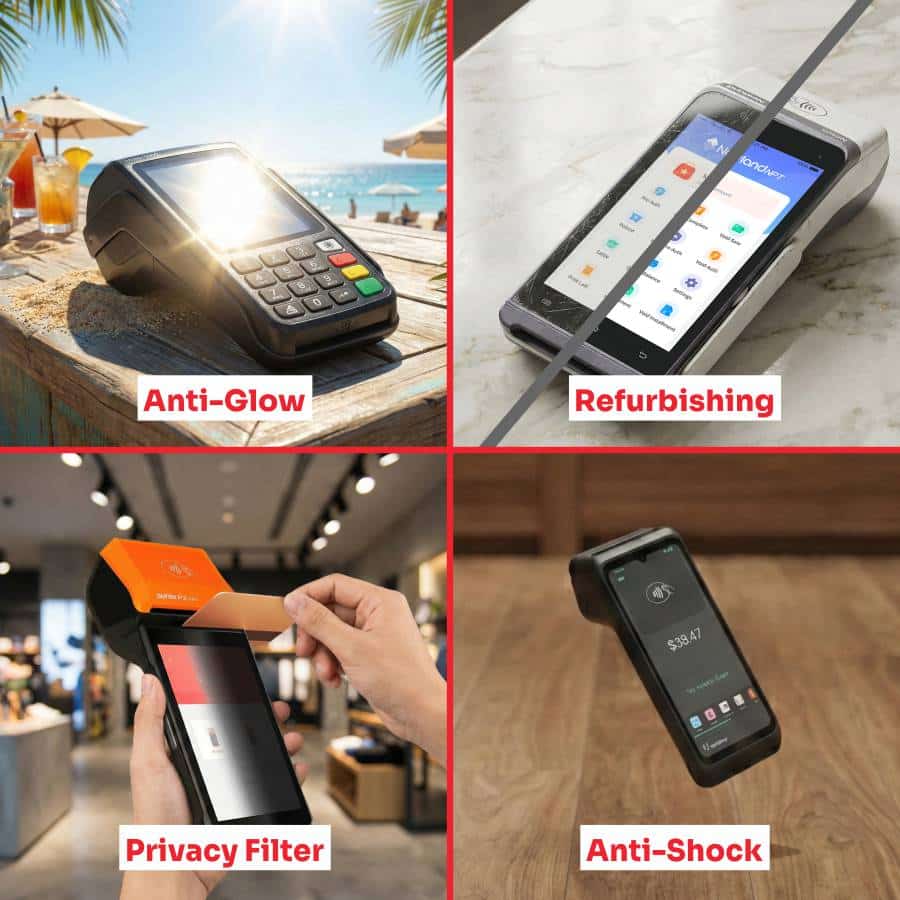 Os protectores de ecrã Duratis protegem os ecrãs dos terminais de pagamento contra riscos, impactos e reflexos - tudo isto sem afetar o desempenho do ecrã tátil.